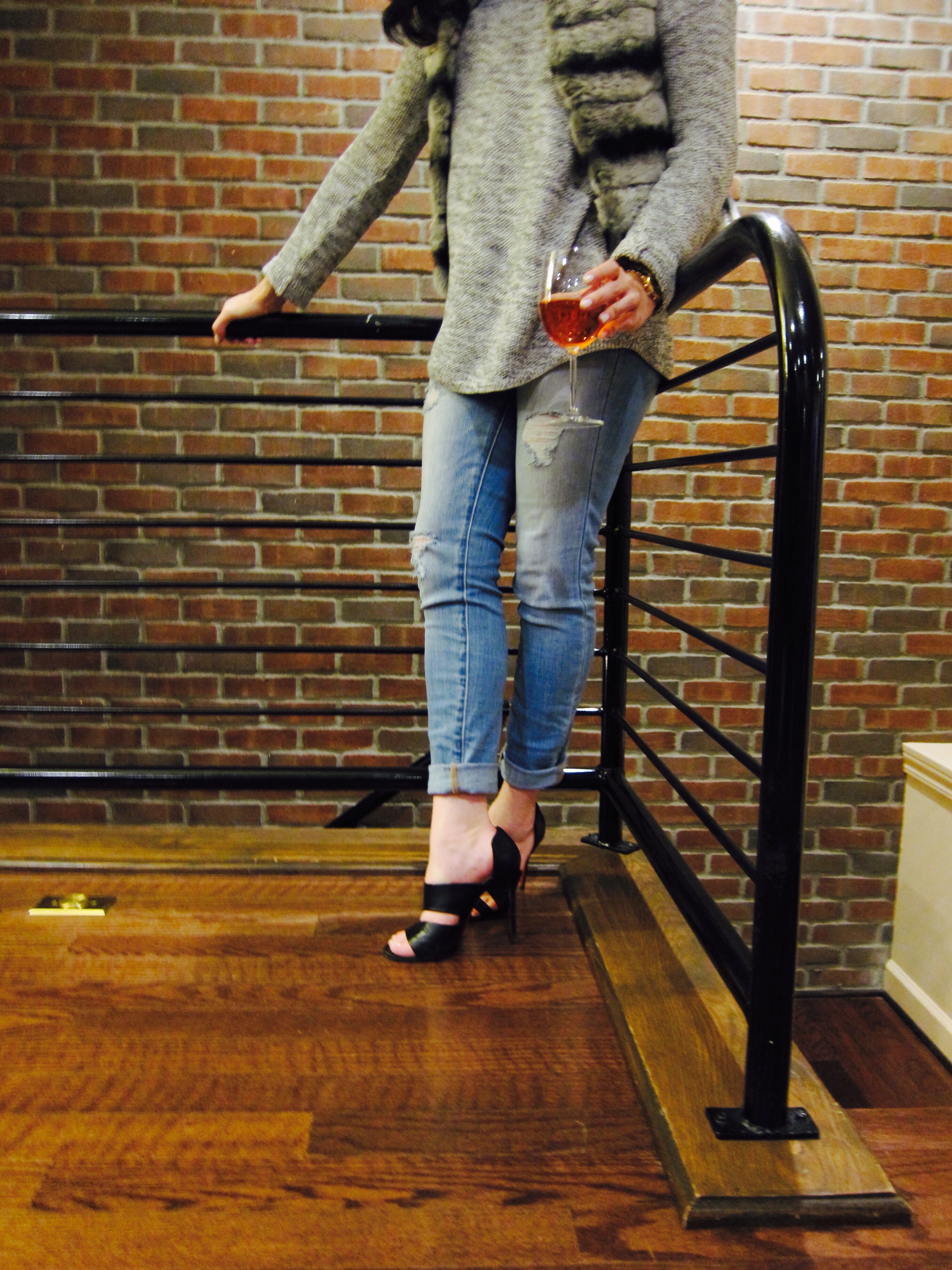I would be lying if I said I wasn’t lazy about getting ready sometimes. I’m human. This Friday I had my weekly girls night outing but rather than going out to bars, we decided a much needed mani and pedi alongside some dinner was necessary this week. The last two weeks particularly have had a lot of bumps in the road so to relax with great company finally helped get me out of the funk I have been in. At least a little. The best part was taking my simple pieces (yes, a sweater I already have posted about but am still OBSESSED with) that I was already wearing and raid Ericka’s closet to turn my simple outfit into something chic for dinner!